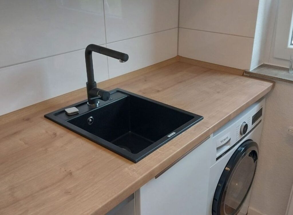 - Spüle einbauen (mit oder ohne Siphon und Wasserhahn)